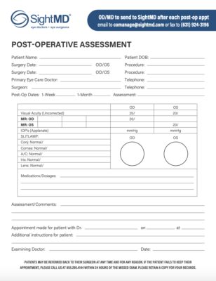 Quickly and securely upload cataract co-management referral & Consent form information, post operative assessments and supporting documents for your patients. Our HIPAA-compliant system ensures all cataract-related information is transmitted safely and efficiently to the SightMD team.